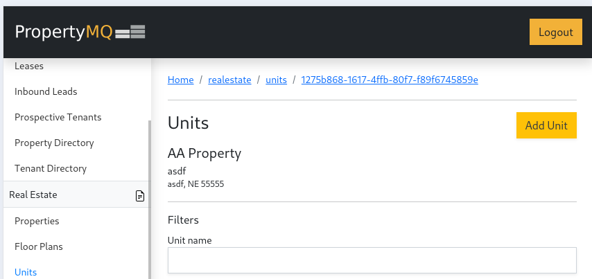 REAL ESTATEselectUnits. At the top of the page clickAdd Unitbutton